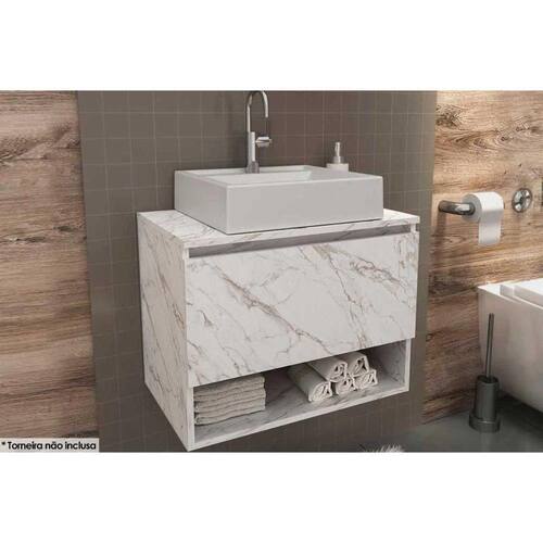Conjunto De Banheiro Balcão Suspenso Bn3606 C/ Cuba Pia Bn3600 60cm Cor Mármore Branco - Tecno Mobili