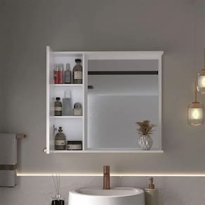 Instalação: Gabinete apoiado (com pés reguláveis) e espelheira para fixação em parede