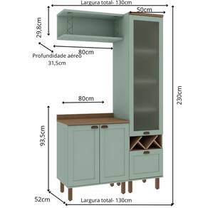 Além do balcão principal, o conjunto inclui um armário com porta de vidro Mini Boreal, molduras refinadas e um gavetão espaçoso.