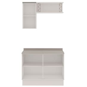 O conjunto acompanha rodapé, mas também pode ser utilizado apenas com pés, oferecendo flexibilidade na instalação.