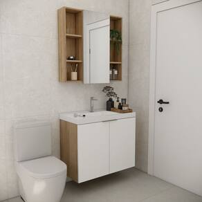 Conjunto de Banheiro sem Cuba Vittare 80Cm Estilare Cnj5005 Carvalho/Branco