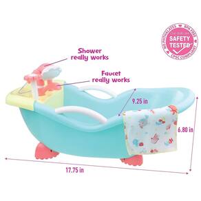JC Toys - para manter a hora de brincar! | Conjunto de banho Baby Doll Real Working | Serve para bonecas de até 16" | Chuveiro e torneira realmente funcionam | Acessórios para brincar | A partir de 2 anos, rosa