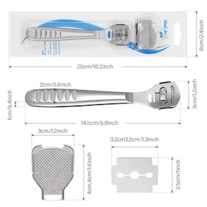 Conjunto de 52 peças de barbeador de calos, 50 lâminas de fatias de substituição, 1 barbeador de calos e ferramentas de cuidados com a cabeça dos pés de 0,3 m, removedor de pele seca e dura para pés de mão. Fácil de trocar a cabeça: O barbeador de calos com design de cabeça removível é fácil de usar e muito conveniente de trocar com uma cabeça de arquivo substituível. Lâminas de substituição suficientes: 50 lâminas estão incluídas, combinando com artesanato de qualidade, podem durar por um longo prazo. Removedor de calos pragmático: O kit de remoção de calos é ótimo para remover calos e pode ser aplicado em pele rachada, dura e morta. Especificações: Material: aço inoxidável Tamanho: Barbeador de calos: 14,5 x 3 cm Cabeça de lixa de pé: 4 x 2,5 cm Cor: como mostrado na imagem Quantidade: 52 peças A embalagem inclui: 1 barbeador de calos com cabo de aço inoxidável. 1 x cabeça de arquivo de carregamento substituível. 50 fatias de substituição. Lembrete: Fique longe de crianças. Não recomendado para pessoas com pele fina. Tenha cuidado ao usar. - Conjuntos de barbeador de calos: totalmente 52 peças em um pacote, contendo 50 lâminas de substituição, 1 barbeador de calos (cabo de aço inoxidável) e cabeça de arquivo de 300 cm, design suave para aderência e controle confortáveis, com cabeça facilmente removível para trocar lâminas ou carregar lima raspada - Cabeça destacável para conveniência: com cabeça removível e vem com uma cabeça substituível, o removedor de calos da mão do pé é fácil de trocar e transportar, as bordas e a alça são polidas, confortáveis e portáteis para remover a pele dura, economizando seu tempo e esforços - Tamanho adequado: o tamanho da embalagem é 25 x 6 cm, o barbeador de calos vem em 14,5 x 3 cm e a cabeça da lixa de pé mede 4 x 2,5 cm, o tamanho adequado permite que você use com facilidade - Uso amplo: a ferramenta de remoção de pele adotando um design prático oferece uma boa solução para pele calejada, seca e dura, pele do calcanhar rachada e muito mais, o que dá uma sensação macia aos pés com pouco esforço, um bom presente para idosos - Aviso: o kit de remoção de calos não é adequado para pessoas que têm pele fina e, por favor, mantenha-o longe do alcance de crianças; tenha cuidado ao usar