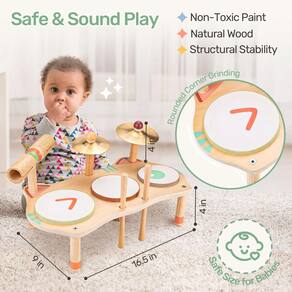 Este conjunto de bateria Montessori é ideal para crianças a partir de 3 anos, com um bloco de tons de madeira, prato, 3 tambores e 2 baquetas. Projetado para reprodução musical, suporta exploração de ritmo, desenvolvimento cerebral e coordenação óculo-manual. Com uma paleta de cores Morandi, oferece uma experiência visual relaxante que combina com qualquer decoração. Feito de madeira natural com tinta não tóxica, é seguro e durável, medindo 42 x 23 x 20 cm. Perfeito como brinquedo de bebê ou presente de primeiro aniversário, este conjunto é uma escolha versátil para conjuntos educativos de bateria e instrumentos musicais para crianças. - Conjunto de bateria de madeira multifuncional: com um bloco de tons de madeira, prato, 3 tambores e 2 baquetas, este brinquedo musical versátil é projetado para crianças a partir de 3 anos, ajudando-as a explorar o ritmo, melhorar a coordenação e se envolver em brincadeiras criativas - Tons suaves Morandi: Este conjunto de bateria infantil apresenta uma paleta de cores Morandi suave com tons suaves e harmoniosos, criando uma atmosfera serena. Suas cores suaves incentivam a criatividade e combinam facilmente com a decoração da casa - Jogo sensorial educativo: inspirado em Montessori para treinamento de ritmo, desenvolvimento cerebral e coordenação olho-mão. Um ótimo brinquedo musical para crianças, promovendo o aprendizado por meio de atividades musicais envolventes - Seguro, natural e resistente: Feito de madeira natural com tinta não tóxica, este conjunto de tambor de bebê é projetado com bordas arredondadas para segurança. Sua estrutura estável garante brincadeiras sem preocupações para crianças a partir de 3 anos - Presente ideal para qualquer ocasião: seja para o Natal, aniversários ou celebrações de feriados, este conjunto de bateria oathx é uma escolha de presente atenciosa para crianças de 3 anos, oferecendo horas de diversão musical e aprendizado
