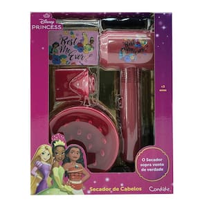 Prepare looks encantadores com o Conjunto de Beleza Meu Secador Disney Princesas! Com visual inspirado nas princesas mais queridas da Disney, o kit traz um secador com bico chato e bico difusor, ideal para recriar os penteados mágicos das princesas. E o melhor é que ele já vem com pilhas e está prontinho para começar a diversão! Um acessório perfeito para transformar cada momento em pura realeza e imaginação!