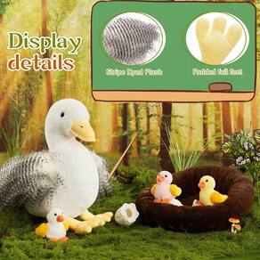 Celebre a alegria da vida na fazenda e as tradições da Páscoa com o conjunto de bichos de pelúcia BENINY de 8 peças! Esta adorável coleção de pelúcia inclui uma gentil mãe pato, três patinhos fofos, três ovos coloridos e um ninho aconchegante, tudo projetado para inspirar brincadeiras imaginativas sem fim. Feitos de materiais de pelúcia ultramacios, seguros para crianças, estes brinquedos de pato são perfeitos para mãos pequenas abraçarem, carregarem e cuidarem. Se o seu filho está reencenando aventuras na fazenda, "chocando" ovos ou se aconchegando para histórias para dormir, este conjunto estimula a criatividade e o vínculo emocional. Ideal para cestas de Páscoa, surpresas do dia das crianças ou meias de Natal, este conjunto de pelúcia de pato funciona como uma encantadora peça de decoração de berçário. O recurso de corda (opcional) adiciona diversão interativa, enquanto os detalhes realistas e cores vibrantes o tornam um presente de destaque para crianças, pais ou amantes de animais. Seguro, durável e irresistivelmente fofo, o conjunto de pelúcia BENINY Duck traz magia de quintal para todas as casas! - Conjunto de pelúcia de pato para diversão sem fim: esta adorável coleção de pelúcia inclui 1 pato mãe grande, 3 patos fofos, 3 ovos e 1 ninho aconchegante — perfeito para brincadeiras temáticas de fazenda, celebrações de Páscoa ou histórias imaginativas. - Estimula brincadeiras imaginativas: desperte a criatividade com aventuras na fazenda, ovos "chocando" e atividades de RPG que promovem vínculo emocional, habilidades de contar histórias e amor pelos animais. - Pato de pelúcia com design realista: com características realistas de pato e um ninho confortável, este conjunto traz charme de quintal para brincar ou decoração de casa, tornando-o uma adição de destaque a qualquer coleção. - Presente perfeito para feriados e qualquer ocasião: ideal para cestas de Páscoa, meias de Natal, surpresas do dia das crianças ou como uma peça de decoração de berçário, este conjunto de pelúcia de pato é um presente emocionante para crianças, pais e amantes de animais. - Material que deixa a mente da mamãe à vontade: Feito de tecido de pelúcia hipoalergênico premium, esses brinquedos de pelúcia de pato são suaves para mãos pequenas, duráveis para brincadeiras duradouras e perfeitos para abraçar, carregar e cuidar.
