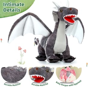 Este adorável conjunto de dragões de pelúcia é adaptado para pessoas de todas as idades. Estes brinquedos de pelúcia interativos de dragão são mais do que apenas um brinquedo ou presente, este conjunto de bichos de pelúcia é o seu melhor amigo para compartilhar. Os bebês dragões voadores podem ser colocados na casca dos ovos e na barriga da mamãe para facilitar o armazenamento e o transporte - ?Conjunto de pelúcia de dragão de 7 peças?Conjunto de pelúcia de dragão de 7 peças com 1 dragão mãe, 4 dragões bebês e 2 ovos. Dragão grande tem um zíper na barriga, descubra a pequena surpresa escondida na barriga da mãe com seu filho - ?Durável e resistente à sujeira?Para fazer as asas de dragão de pelúcia se levantarem de forma mais realista, adicionamos papelão às asas, não lavável na máquina, o material resistente à sujeira pode ser limpo com uma toalha de papel úmida - ?Design de armazenamento?Há um zíper na barriga do brinquedo de pelúcia Mommy Dragon para caber em todos os dragões de pelúcia, o que é muito adequado para armazenamento e transporte quando sair para brincar. E isso ajuda a mãe a manter as salas de jogos limpas e organizadas - ?Brincadeira interativa? As cores brilhantes e múltiplas dos brinquedos macios de dragão melhoram a agilidade e a cognição das cores do seu filho, oferecendo a combinação perfeita para desenvolver habilidades sensoriais e incentivar o crescimento social e emocional - Ótimo presente: ideal para amantes de animais de pelúcia de dragões, este conjunto é um presente perfeito para aniversários, chás de bebê, Páscoa, Dia dos Namorados ou qualquer ocasião para crianças, bebês, meninos e meninas que amam dragões
