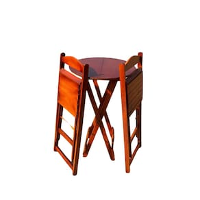 Conjunto Bistrô Dobrável - Mesa com 2 Banquetas para Bar em Madeira (Cor MEL)