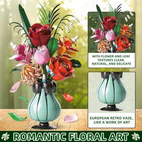 - ?Elegante vaso de estilo europeu? Ao contrário da maioria dos buquês de blocos de construção, este conjunto inclui um vaso de construção exclusivo de estilo europeu, permitindo que você organize flores como um florista profissional. O buquê exala elegância e sofisticação. O conjunto também vem com instruções detalhadas, o que o torna uma excelente atividade para famílias e crianças desfrutarem juntas.