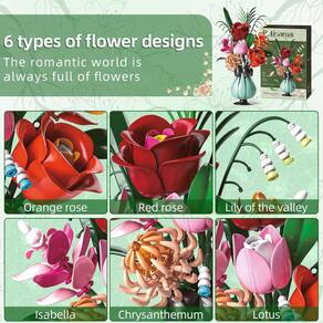 - ?Liberte a criatividade com o buquê de blocos de construção faça você mesmo?Crie incríveis buquês florais DIY com rosas, lótus, lírio do vale, Isabella e crisântemos. Cada flor é meticulosamente projetada com detalhes complexos para atender perfeitamente às suas necessidades artísticas florais criativas.