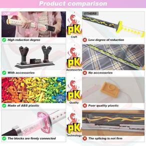 Modelo de emenda da espada Demon Slayer: Material: plástico Tipo de plástico: ABS Idade recomendada: para crianças a partir de 6 anos Tamanho do bloco: bloco de construção pequeno AVISO PERIGO DE ASFIGURA: Peças pequenas, não adequadas para crianças menores de 3 anos Cultivo em seis dimensões: Inspira a criatividade das crianças. Cultive as habilidades de trabalho em equipe das crianças. Exercite a capacidade operacional das crianças. Pratique a capacidade de coordenação das crianças. Inspire as crianças a terem imaginação ilimitada. Melhora a capacidade de pensamento independente das crianças. - autêntico altamente restaurado: este bloco de construção da espada Demon Slayer é a espada Tsuyuri Kanao do anime Demon Slayer e a espada Kanao foi cuidadosamente projetada. A lâmina e o cabo são todos feitos de acordo com a animação autêntico, restaura perfeitamente a imagem vívida de todos os elementos. É um item colecionável legal. - Garantia de qualidade: nossos tijolos de espada katana são feitos de plástico ABS certificado de acordo com os padrões ambientais internacionais e testados pela ASTM F963-17 e CPSIA. Após 10 processos industriais, corte CNC preciso e processamento avançado de cores, certifique-se de que cada peça esteja firmemente conectada, não deformada ou desbotada. - Tamanho Katana regular: esta espada katana contém 788 blocos, vem com uma bainha e um suporte. Esta espada Kanao é composta de blocos de construção de alta qualidade. O comprimento de 99 cm a torna mais próxima de uma espada katana, dando a você uma aderência perfeita, é a melhor escolha para cosplay. Observe que ele suporta apenas oscilação de luz, por favor, não o balance vigorosamente. - Melhor escolha para fãs de anime: esta espada de anime é o melhor presente para fãs de Demon Slayer que procuram, este kit de modelo é perfeito para quem ama colecionáveis de Demon Slayer, e para os amantes de blocos de construção que procuram um projeto diferente, é um tributo divertido e realista a Tsuyuri Kanao do anime Demon Slayer. - Projetos STEM para crianças: a espada Kanao é compatível com as principais marcas, este conjunto de blocos de construção inclui manuais de instruções coloridos, através da montagem de blocos de construção, pode promover a coordenação olho-mão das crianças, pensamento divergente e capacidade de resolução de problemas, além de estimular sua criatividade e imaginação.
