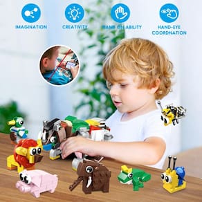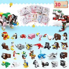 ?Conjuntos de construção de mini animais 30 em 2?: Os conjuntos têm um total de 867 peças, incluindo um pacote de 30 blocos de minianimais, leão, elefante, antílope, macaco, abelha e muito mais. Além dos pequenos animais, este conjunto também pode ser construído em 2 animais enormes, lembrancinhas legais para crianças de 8 a 12 anos ?Aprenda enquanto brinca?: um total de 30 minianimais fofos diferentes em uma variedade de cores vibrantes, que podem aumentar a cognição das formas de cores de seus filhos e ajudá-los a despertar a imaginação, melhorar a habilidade prática, a inteligência e a paciência. Adequado para meninos de 6 a 9 anos, pode ter certas dificuldades para crianças pequenas ou precisar de ajuda para adultos . ?Seguro e Premium?: o conjunto de construção de minianimais HOGOKIDS 30 em 2 é feito de material ABS autêntico e certificado de segurança CPC, não é afiado, não tóxico e durável, é tão seguro para seus filhos que se sintam à vontade para deixá-los brincar de forma divertida. Como uma festa de aniversário favorece presentes, este brinquedo cria um mundo animal maravilhoso para crianças ?Presentes perfeitos para festas de animais?: os blocos de construção do animal são um presente ideal para seus filhos. Distribua-os como lembrancinhas da festa de Páscoa, esconda-os na cesta como recheados. Também pode ser utilizado como prêmio para crianças em sala de aula, enchedoras de sacolas de guloseimas e prêmios de carnaval, minikits de brinquedos de aniversário para meninos de 6 anos ?Garantia e excelente serviço?: os conjuntos de lembrancinhas de animais HOGOKIDS para crianças oferecem garantia incondicional de devolução do dinheiro em 30 dias e garantia de devolução e substituição de 12 meses. Se você tiver alguma dúvida, sinta-se à vontade para entrar em contato com nosso atendimento ao cliente, estaremos sempre aqui para lhe fornecer um serviço satisfatório 24 horas -?Conjuntos de construção de mini animais 30 em 2?: Os conjuntos têm um total de 867 peças, incluem pacote de 30 blocos de mini animais, leão, elefante, antílope, macaco, abelha e muito mais. (DICAS: atualizamos as instruções do livreto para instruções individuais embaladas em cada sacola de construção correspondente, perfeitamente adequadas para lembrancinhas.) Além dos pequenos animais, este conjunto também pode ser construído em 2 animais enormes, lembrancinhas legais para crianças de 8 a 12 anos -?Aprenda brincando?: Total de 30 minianimais fofos diferentes em uma variedade de cores vibrantes, que podem aumentar a cognição das formas de cores de seus filhos e os ajudarão a despertar a imaginação, melhorar a habilidade prática, a inteligência e a paciência. Adequado para meninos de 6 a 9 anos, pode ter certas dificuldades para crianças pequenas ou precisar de ajuda para crianças menores de 6 a 9 anos -?Seguro e de qualidade premium?: o conjunto de construção de minianimais HOGOKIDS 30 em 2 é feito de material ABS autêntico e certificado de segurança CPC, não afiado, não tóxico e durável. É muito seguro para seus filhos, fique à vontade para deixá-los se divertirem. Como presente de lembrancinhas de aniversário, este brinquedo cria um mundo animal maravilhoso para crianças -?Presentes perfeitos para festas de animais?: os blocos de construção do animal são um presente ideal para seus filhos. Distribua-os como lembrancinhas da festa de Páscoa, esconda-os na cesta como recheados. Também pode ser utilizado como prêmio para crianças em sala de aula, enchedoras de sacolas de guloseimas e prêmios de carnaval, minikits de brinquedos de aniversário para meninos e meninas de 6 anos -?Garantia e excelente serviço?: os conjuntos de lembrancinhas de animais HOGOKIDS para crianças oferecem garantia incondicional de devolução do dinheiro em 30 dias e garantia de devolução e substituição de 12 meses. Se você tiver alguma dúvida, sinta-se à vontade para entrar em contato com nosso atendimento ao cliente. Estaremos sempre aqui para fornecer com 24 horas de serviço satisfatório