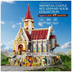 O conjunto integra sistema de iluminação com 16 pontos de LED e faixas de luz, projetado para iluminar interior e exterior, com destaque para o efeito de luz que atravessa vitrais coloridos da tesouraria. Acompanha minifiguras temáticas de rei, responsável pela tesouraria, guarda, emissário e personagem infiltrado, permitindo representação de cenas de proteção e tentativa de invasão ao cofre.?