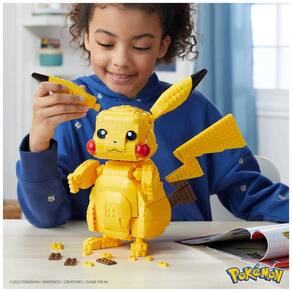 O MEGA Pokémon Jumbo Pikachu é um conjunto de blocos de montar com 806 peças que permite construir uma figura em grande escala do Pokémon Pikachu, com múltiplos pontos de articulação. Após montado, o modelo atinge aproximadamente 30 cm de altura, com corpo segmentado, cabeça volumosa e base estável para exposição em superfícies planas. ? A estrutura final possui pernas, braços, cauda e orelhas articuladas, permitindo ajustar a postura do personagem em diferentes poses para exibição ou brincadeiras. As articulações são baseadas em conexões de blocos, possibilitando reposicionamento manual sem necessidade de ferramentas. ? As peças são compatíveis com outros conjuntos de blocos de montar Pokémon da MEGA e com principais marcas de blocos de encaixe, facilitando a integração em cenários já existentes. O produto é recomendado para usuários a partir de 8 anos, em função da quantidade de peças e do nível de detalhamento da montagem, contribuindo para desenvolvimento de coordenação motora fina e raciocínio espacial. ? Ficha Técnica: