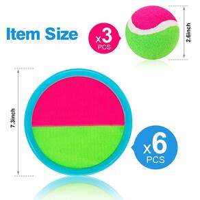 Especificações: Material: ABS de alta qualidade Cor: Bule + vermelho + verde Dimensões: A raquete tem aproximadamente 7,3 polegadas/18,5 cm A bola mede aproximadamente 6,5 cm Incluído na embalagem: 6 x remos 3 bolas 1 bolsa portátil. Qual é o papel do jogo de arremessar e pegar? Perfeito para atividades familiares A interação entre pais e filhos desempenha um papel muito importante no crescimento das crianças. Este jogo de arremesso de quintal promoverá muito seu relacionamento familiar. Jogos de arremesso melhoram a coordenação olho-mão Desenvolver uma boa coordenação olho-mão é uma parte essencial do desenvolvimento de uma criança. Permite que uma criança dirija e controle seus membros, tornando possível interagir com objetos no mundo físico mais facilmente. Melhora a coordenação motora grossa e fina. A coordenação motora fina é a coordenação de pequenos músculos, como os dos dedos e das mãos, com os olhos. O desenvolvimento de habilidades motoras finas dá às crianças a destreza necessária para realizar tarefas complexas, como pegar e organizar pequenos objetos. - Conjunto de bolas de alta qualidade: Nossos brinquedos de praia foram feitos de material 100% de alta qualidade, bolas não frágeis e mais macias para evitar que a raquete seja danificada novamente. - Jogos divertidos de jogar e pegar bola: Nossos jogos ao ar livre incluem 6 bolas e 3 remos, 1 armazenamento requintado. É fácil de jogar, um lado joga a bola e o outro pega a bola. Este jogo pode ser jogado por 2-6 pessoas, o que é flexível e divertido para reunir crianças e adultos para jogar. - Raquete perfeita para esportes ao ar livre: Você ainda está se preocupando com a falta de companhia para seus filhos por causa do trabalho ocupado? Este jogo para crianças de 4 a 8 anos pode ajudá-lo. Você pode jogar o jogo de jogar e pegar com seus filhos no seu quintal a qualquer momento, então comece a aproveitar seu divertido tempo com a família agora! - Jogue a qualquer hora e em qualquer lugar: os brinquedos de areia são adequados para quintal, praia, gramado, parque, etc. Você pode jogar com sua família, amigos e colegas de classe para se divertir muito. Ótimo para festas infantis, acampamentos e outras atividades. - Ótimo para melhorar a aptidão física da criança: você ainda está preocupado com o vício do seu filho em eletrônicos? Estes jogos ao ar livre podem ajudá-lo. Nossos brinquedos ao ar livre podem exercitar a coordenação olho-mão das crianças e os músculos do braço, sempre mantendo as crianças ativas e saudáveis. O jogo de arremesso precisa de pelo menos 2 jogadores, o que é uma boa maneira de promover a interação entre amigos e familiares.