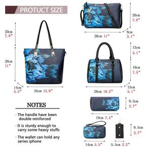 Dimensões do conjunto de bolsas bolsa grande 35,05 centímetros x 12,7 centímetros x 27,94 centímetros A bolsa Boston 25,4 centímetros x 12,7 centímetros x 19,05 centímetros A bolsa de corpo 27,94 centímetros x 10,92 centímetros x 19,81 centímetros Bolsa de mão 13,97 centímetros x 10, bolsa de cartão 6,86 centímetros x 10,92 centímetros