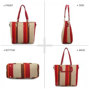 O conjunto 2E juventude inclui uma bolsa grande, uma bolsa média, uma bolsa de ombro, uma embreagem, uma bolsa e um porta chaves, oferecendo diversas opções de uso para diferentes ocasiões. As dimensões do conjunto variam de acordo com o modelo, mas todas as peças são práticas e funcionais.