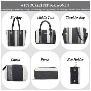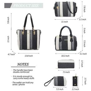 Dimensões do conjunto de bolsas bolsa grande 35,05 centímetros x 12,7 centímetros x 27,94 centímetros A bolsa Boston 25,4 centímetros x 12,7 centímetros x 19,05 centímetros A bolsa de corpo 27,94 centímetros x 10,92 centímetros x 19,81 centímetros Bolsa de mão 13,97 centímetros x 10, bolsa de cartão 6,86 centímetros x 10,92 centímetros