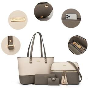 Material Couro Sintético tecido, Poliéster forro. Tamanho Bolsa grande 33 x 26,5 x 12,69 centímetros, Bolsa transversal 26 x 9,49 x 19 centímetros, Carteira 20 x 10 x 3 centímetros, Porta cartão 10,5 x 7,5 x 1 centímetros. Peso total cerca de 1,05 kg. Por favor, você pode consultar o tamanho antes de comprá lo. Obrigado. Bolsos Um compartimento principal com zíper, um bolso interno com zíper, um bolso traseiro e dois bolsos embutidos. 4 peças uma bolsa grande uma bolsa mensageiro bolsa carteira porta cartões. Perfeito para namorar, fazer compras, trabalhar, viajar, vocação, festa e outras ocasiões e manter seus itens diários bem organizados. Material de ótima qualidade, super fofo e tamanho perfeito. Bem feito e muito resistente Marca: Não Informado