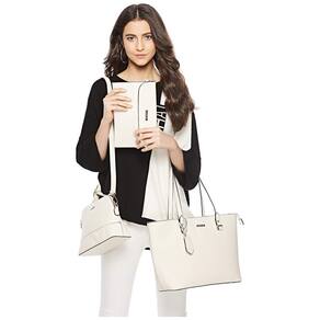 Conjunto de Bolsas Femininas em Couro Sintético 4 Peças com Carteira, Lovematch, Bege - Branco - Regulável