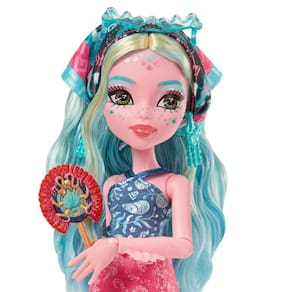 Misture e combine mais de 125 possibilidades de looks! Lagoona Blue está pronta para relaxar à beira da piscina no oásis gore-geous com acessórios como bolsa de concha, bandana e leque para se refrescar no calor.