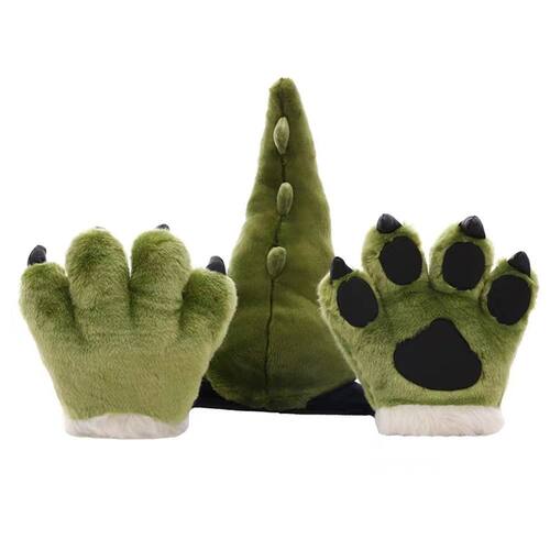 Material: conjunto de fantasias de pelúcia Creative Animal — Este pacote de brinquedos de pelúcia inclui uma cauda de dinossauro verde e luvas de pata combinando com detalhes em garras, ideais para brincadeiras e fantasias criativas. Material macio e durável — Feito de tecido macio de pelúcia e preenchido com algodão PP, ele garante conforto e uso duradouro para diversão interna e externa. Perfeito para cosplay e dramatização — Projetado para crianças representarem seus personagens animais favoritos, ótimo para festas à fantasia, apresentações teatrais ou eventos temáticos de zoológicos. Divertido e educativo — Incentiva a narrativa criativa e a brincadeira de fingir, o que ajuda as crianças a desenvolver imaginação, habilidades sociais e autoconfiança. Unissex e ajustável — Adequado para meninos e meninas; as luvas e a cauda se encaixam confortavelmente na maioria das crianças, facilitando o uso e a remoção.