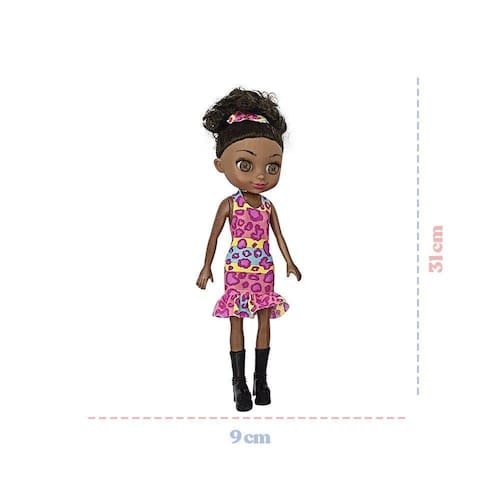 - Dimensões: Boneca Mamãe - Altura: 31cm, Largura: 9cm; Boneca Filhinha - Altura: 18cm, Largura: 7cm
