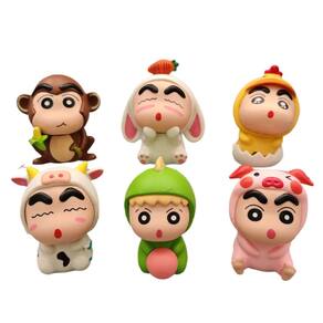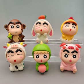 Material: PVC Cor: multicolorido Tamanho do pacote: 15 x 10 x 8 cm Peso da embalagem: 0,26 kg Lista de embalagem: 6 x bonecos Este conjunto de bonecos Crayon Shinchan apresenta Shinosuke em 6 trajes de animais diferentes, incluindo macaco, coelho, galinha, vaca, dinossauro e porco, cada um com 6 cm de altura. Imprescindível para fãs e colecionadores do programa. ', 'Feitas de PVC de alta qualidade, essas figuras são detalhadas e apresentam cores vibrantes, com a icônica expressão maliciosa de Shinosuke capturada em cada traje de animal exclusivo para um toque divertido. ', 'As figuras vêm em um tamanho compacto de 6 a 7 cm, o que as torna perfeitas para exibição em espaços pequenos, como mesas, prateleiras ou armários. Eles trazem uma adição divertida e charmosa a qualquer coleção com tema de Crayon Shinchan ou anime. ', 'Seja para exibição individual ou em conjunto, essas figuras adicionam humor e personalidade a qualquer coleção, mostrando as adoráveis transformações de Shinosuke em uma variedade de roupas coloridas de animais. ', 'Ideal como presente para fãs de Crayon Shinchan ou para quem adora figuras fofas e divertidas, este conjunto é uma peça deliciosa e colecionável, perfeita para entusiastas de anime mais jovens e mais velhos.']