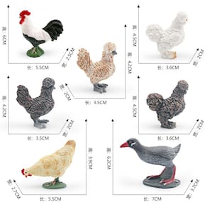 Conjunto de 7 peças de bonecos de galinha em miniatura, estatuetas de animais de fazenda em PVC, inclui galo, galinha polonesa, galinha-d'água, animais de fazenda realistas para crianças, brinquedos educativos e decorações para casa Descrição: Material: PVC Tamanho: 2-6,2 cm Consulte a imagem para obter detalhes específicos de tamanho Peso: 109 g Características: figuras realistas de galinhas e pássaros — Este conjunto apresenta várias raças de galinhas, incluindo galo, galinha polonesa e galinha-d'água com outras aves da fazenda, proporcionando uma experiência divertida e educacional. Construção em PVC de alta qualidade — Feitas de material de PVC durável e não tóxico, essas bonecas são seguras para crianças e projetadas com texturas detalhadas para uma aparência realista. Ideal para brincadeiras educativas — Perfeitas para ensinar crianças sobre diferentes tipos de galinhas e animais de fazenda, essas estatuetas também incentivam brincadeiras imaginativas e criatividade nas mentes dos jovens. Ótimos para decoração — Esses encantadores animais de fazenda são peças de decoração maravilhosas para quartos infantis, escolas, salas de aula ou dioramas, trazendo um toque da vida na fazenda a qualquer espaço. Perfeitos para crianças de 3 anos ou mais — Seguros e divertidos para crianças pequenas, esses bonecos oferecem horas de brincadeiras criativas, ajudando a desenvolver habilidades de reconhecimento de animais e promover o amor pela natureza. O que vem na caixa: 7 x Conjunto de bonecos de frango em miniatura