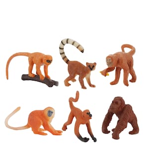 Conjunto de 6 peças de bonecos de macaco em miniatura, coleção de estatuetas de macaco selvagem em PVC, inclui poses de gibão, lêmure e outros macacos, perfeito para brinquedos, decorações e itens colecionáveis para crianças Descrição: Material: PVC Tamanho: 3,5 a 16 cm Peso: 50,8 g Características: Variedade de figuras de macaco: este conjunto inclui 6 estatuetas realistas de macacos de PVC, com diferentes poses de gibões, lêmures e outros macacos selvagens em posições naturais, como escalar e jogar. Ideal para crianças e colecionadores: perfeitas para crianças de 3 anos ou mais, essas figuras também são uma excelente adição a qualquer coleção de estatuetas de animais ou como uma linda peça decorativa para casa ou escritório. Material durável e seguro: feitas de PVC não tóxico de alta qualidade, essas estatuetas de macaco são seguras para crianças, sem bordas afiadas, o que as torna perfeitas para brincadeiras interativas e educacionais. Incentiva o aprendizado e a criatividade: essas estatuetas são uma ótima maneira de ensinar as crianças sobre macacos e seu comportamento, ao mesmo tempo em que incentivam histórias imaginativas e brincadeiras criativas. Decoração versátil: esses macacos em miniatura funcionam como brinquedos, parte de dioramas ou decorações para festas temáticas, salas de aula ou exibições com temas da natureza, trazendo um toque de vida selvagem a qualquer espaço. O que vem na caixa: 6 x Conjunto de figuras de macaco em miniatura
