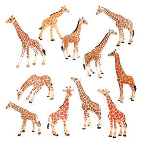 Conjunto de 11 peças de figuras de girafa realistas, brinquedos de PVC para animais selvagens, conjunto de brinquedos para famílias de girafas, estatuetas educacionais de animais para crianças, decoração de animais de safári para quartos infantis Descrição: Material: PVC Tamanho: 5,7-17,5 cm Peso: 900 g Características: Família de girafas detalhada: Este conjunto inclui uma variedade de figuras de girafas realistas com detalhes intrincados, incluindo poses e tamanhos diferentes, mostrando a beleza majestosa das girafas. Perfeitas para educação: essas figuras de girafa são ótimas para ensinar crianças sobre vida selvagem e animais de safári, promovendo o desenvolvimento cognitivo e incentivando brincadeiras imaginativas. Seguras e duráveis: feitas de PVC não tóxico de alta qualidade, essas estatuetas são projetadas para durar e são seguras para crianças de 3 anos ou mais, oferecendo diversão duradoura. Ideal para brincar e decorar: essas figuras não são apenas ótimas para brincadeiras educacionais, mas também servem como decorações deslumbrantes com temas de vida selvagem para quartos infantis, salas de aula ou áreas de recreação. Tamanhos variados para brincar: variando de 5,7 a 17,5 cm, essas figuras de girafa têm o tamanho perfeito para as crianças manusearem, tornando-as divertidas tanto para brincar quanto para serem exibidas. O que vem na caixa: 11 x Conjunto de figuras de girafa realistas