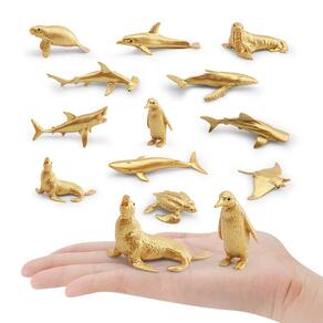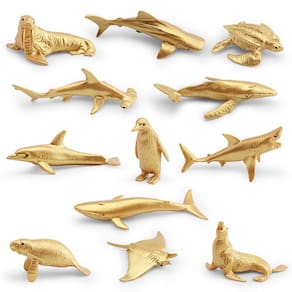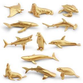 Conjunto de 12 peças de bonecos de animais do oceano dourado, modelos realistas de PVC, inclui morsa, tubarão-martelo, baleia jubarte, pinguim e muito mais — Brinquedos e decorações educativas para crianças Descrição: Material: PVC Tamanho: 2-8 cm Peso: 88 g Características: diversas figuras douradas do oceano: este conjunto apresenta 12 estatuetas exclusivas de animais oceânicos, incluindo morsa, tubarão-martelo, baleia jubarte, pinguim e mais, tudo com um luxuoso acabamento dourado. Construção durável em PVC: feitas de PVC não tóxico de alta qualidade, essas estatuetas são seguras para crianças e duráveis o suficiente para suportar horas de brincadeiras criativas. Educacional e divertido: uma maneira perfeita de ensinar as crianças sobre a vida marinha, este conjunto ajuda a promover o aprendizado sobre diferentes criaturas oceânicas, ao mesmo tempo em que incentiva a criatividade. Perfeitas para exibição e decoração: essas figuras douradas de animais marinhos são adições impressionantes a festas temáticas, salas de inspiração marinha ou salas de aula, adicionando elegância e charme a qualquer espaço. Ótimo para colecionadores: seja para entusiastas do oceano, colecionadores ou para aqueles que amam uma decoração única, esses modelos de animais dourados oferecem apelo estético e valor educacional. O que vem na caixa: 12 x Conjunto de figuras de animais dourados do oceano