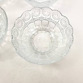 Conjunto De Bowls 6pc Para Sobremesa Nilo 5x10cm Já imaginou montar sua Mesa Posta com louças lindas e bem delicadas Aqui, na Inigual Decor, você encontra peças como esse kit de Bolws transparentes com detalhes de flores, podendo usar para sobremesas ou até mesmo usar para fazer um arranjo na mesa. Monte sua mesa e deixe a sua decoração ainda mais sofisticada.