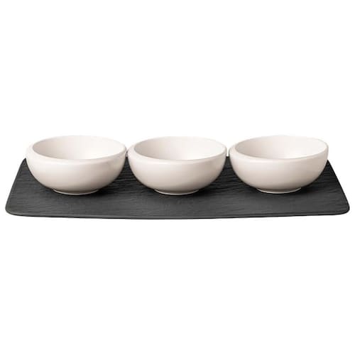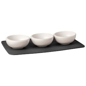 O conjunto de tigelas Villeroy & Boch NewMoon é perfeito para servir molhos, petiscos e outros acompanhamentos. Com capacidade de 110 ml, as tigelas apresentam um design minimalista e elegante em porcelana branca, que destaca o prato e traz sofisticação à mesa.