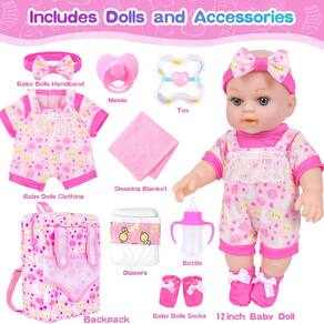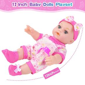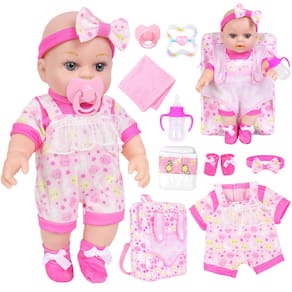 XFEYUE Brinquedo de boneca de 30 cm com mochila e acessórios de roupas de bonecas, inclui mamadeiras, mamilos, tocadores, fraldas, cobertores - O pacote inclui: boneca de bebê de 30 cm e acessórios de roupas, mochila, mamadeiras, mamilo, anel, fralda, cobertores - Fácil de transportar: este conjunto de bonecas está equipado com uma mochila grande o suficiente. Pode não apenas colocar todos os acessórios, mas também colocar a boneca atrás da mochila. Quando seu filho carregar esta mochila e levar sua boneca e acessórios, acredito que ela ficará muito feliz. - Boa praticidade: bonecas e roupas laváveis deixam mães e crianças livres de desconforto. Se a boneca ficar suja, não se preocupe, basta limpá-la com um pano úmido. As roupas da boneca podem ser retiradas e limpas, o que é muito conveniente - O presente perfeito: vem embalado pronto para uso ou para entregar como o presente perfeito para o Natal, feriados, aniversários ou qualquer outro momento. - Serviço de qualidade: Nós nos preocupamos com sua experiência de compra e oferecemos total satisfação. Se você tiver alguma dúvida ou sugestão, clique na página do seu pedido e clique em "Fazer uma pergunta" para entrar em contato conosco