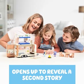 Conjunto de brinquedos Bluey Caravan Adventure, com boneco Jean Luc de 2,5 polegadas — Embarque em uma aventura de caravana com a família e amigos de Bluey's Caravan Adventure no conjunto de brinquedos Bluey'S Caravan Adventure — Vire e dobre a caravana para revelar espaços para seus bonecos de Bluey brincarem! - Cozinhe na cozinha da caravana ou toste um marshmallow na fogueira - O conjunto de brinquedos Bluey'S Caravan Adventure vem com sete acessórios divertidos, incluindo um boneco Jean Luc de 2,5 polegadas