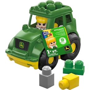 MEGA BLOKS John Deere Conjunto de blocos de montar para crianças, trator Lil' com 6 peças e armazenamento, 1 figura, verde, para idades a partir de 1 ano