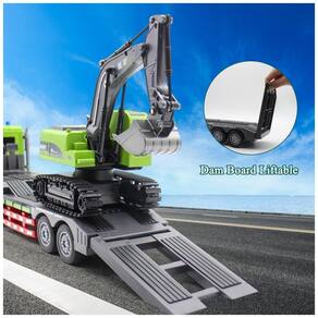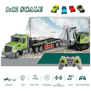 O Conjunto de Brinquedos Caminhão Reboque e Escavadeira da Fistone simula com precisão um caminhão real, com funções avançadas como ir para frente e para trás, virar para os lados, ligar e desligar efeitos sonoros, alto-falante e funções de apresentação automática. A escavadeira controlada remotamente pode se mover para frente e para trás, virar para os lados, e levantar e abaixar a caçamba. Com um tamanho de 61cm de comprimento, este caminhão RC na escala 1:12 pode transportar vários veículos, como carros, caminhões de bombeiros, tratores e caminhões basculantes. A transmissão potente de 2.4GHz oferece controle preciso com alcance de até 30 metros. O controle remoto possui dois modos separados para operar a escavadeira e o reboque, proporcionando uma experiência realista. Feito com materiais de alta qualidade, este caminhão RC garante durabilidade e segurança. O reboque destacável pode se estender até 79cm, permitindo que as crianças transportem e rebocem diferentes veículos, estimulando a criatividade e cenários de jogo de simulação. Ideal para crianças de 6 a 12 anos, este brinquedo promove a coordenação motora e a imaginação das crianças.