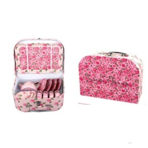 Brinquedo de chá de metal rosa, 17 acessórios + Estojo perfeito para compartilhar com meninas em casa, ele contém 17 acessórios, além de um estojo de transporte, é de um material altamente resistente. Em poucas palavras, é ideal para compartilhar com os itens domésticos aproximados. Copo 2,7 x 6,7 cm, bandeja grande, 24 x 15 cm, pratos, estojo de 5 cm, 25 x 10,5 cm