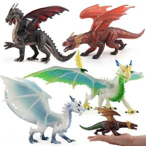 Conjunto de 5 peças de figuras de dragão, estatuetas realistas de dragão com mandíbulas móveis, brinquedos Mythical Fantasy Creature, modelos grandes de PVC para crianças e brincadeiras criativas, decorações educacionais para meninos e meninas de 3 anos Descrição: Material: PVC Tamanho: 8-22 cm Peso: 800 g Características: 🐉 Detalhes realistas — Este conjunto de brinquedos de dragão inclui 6 figuras de dragão altamente detalhadas com mandíbulas móveis, escamas texturizadas e pintura vibrante, criando uma fantasia realista cenário para as crianças explorarem. 🏰 Material de PVC durável e seguro — Feitas de PVC não tóxico de alta qualidade, essas estatuetas de dragão são resistente e seguro para crianças manusearem, ideal tanto para brincar quanto para decorar de mesa. 🎭 Incentiva a criatividade — Perfeito para contar histórias, aventuras de fantasia e jogos de RPG, ajudando as crianças a aprimorar sua imaginação e desenvolver habilidades de interação social. 📏 Tamanho perfeito para mãos pequenas — Cada dragão varia de 8 a 22 cm, o que os torna fáceis de segurar e, ao mesmo tempo, oferece detalhes impressionantes, ótimos para colecionadores e exibições educacionais. 🎂 Decorações multiuso — Ideal para fantasia decorações de festas temáticas, coberturas de bolo, projetos de ciências em sala de aula ou simplesmente tão legais decoração de quarto para amantes de dragões. O que vem na caixa: 5 x Dragon Figures Play Set