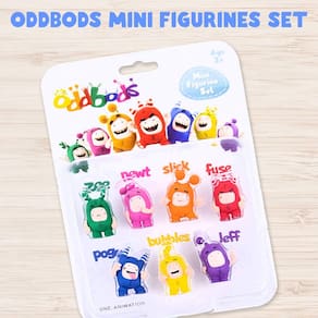 Conjunto de miniestatuetas ODDBODS para crianças em idade pré-escolar (3 anos ou mais) - Ofereça diversão sem fim que as crianças vão adorar com um conjunto de bonecos de ação que são uma ótima adição a qualquer coleção de brinquedos ou como decoração de quarto ou mesa - O conjunto de brinquedos de miniestatuetas Oddbods é feito de PVC; um material seguro, durável e robusto que não se quebra facilmente - O conjunto de minibonecos salta perfeitamente da tela para o conjunto de brinquedos de seu filho, cada personagem está pronto para a ação — Ótimo presente para meninos e meninas durante as festas de fim de ano ou aniversários, também funciona muito bem como cobertura de bolo — Os personagens do conjunto incluem Fuse, Pogo, Newt, Bubbles, Slick, Zee e Jeff; conheça as características únicas e adoráveis de cada um; produtos oficialmente licenciados