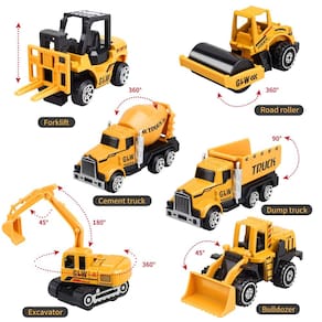 - 60 peças de brinquedos para caminhões de construção - Vem com caminhão transportador de construção multifuncional maior, escavadeira, caminhões basculantes, rolo rolante, caminhão de cimento, empilhadeira, escavadeira, guindaste de torre, placas de construção, cones e bloqueios de estradas em um total de 60 peças. Este é um conjunto de presentes de grande valor que pode atender a todas as necessidades de jogos de construção do pequeno engenheiro.