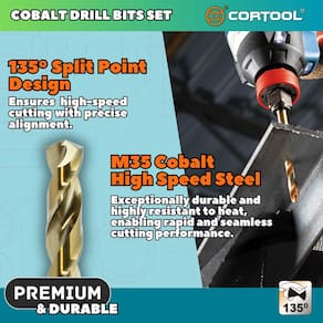 CORTOOL Brocas de cobalto de 5/40.6 cm (12 peças), conjunto de brocas de metal M35 HSS para metal duro, aço inoxidável, ferro, cobre, alumínio, latão, plástico e madeira ?12 peças de brocas de cobalto de 5/40.6 cm?12 peças - 5/40.6 cm (diâmetro 7,94 mm) x 8,6 cm 2 cm (gripe) Comprimento 82 mm), Comprimento total 116 mm brocas de metal. Esta broca serve para a maioria das furadeiras elétricas atualmente no mercado. ?Aço de alta velocidade cobalto M35?Conjunto de brocas de aço de alta velocidade M35 de grau industrial, muito mais duro do que o HSS utilizado em outros conjuntos de brocas semelhantes. Estas brocas contêm 5% de cobalto, o que aumenta a resistência ao desgaste e a durabilidade. ?Processo totalmente moído e ponto de divisão de 135°?O design de ranhura espiral totalmente moído limpa partículas rapidamente, diminui o atrito e o calor para um desempenho de perfuração mais rápido e mais frio. O ponto dividido de 135° com haste reta evita caminhar e torna a perfuração precisa e rápida. Não é necessário perfurador central. ?Múltiplas aplicações?Perfeitamente adequado para cortar metais duros como aço inoxidável, aço, chapa metálica e ferro fundido, bem como plástico, liga de alumínio, madeira e outros metais mais macios. Preste atenção à velocidade, pressão e controle de calor durante a perfuração. - ?12 peças de brocas de cobalto de 5/40.6 cm?12 peças - 5/40.6 cm (diâmetro 7,94 mm) x 8.2 cm (comprimento da flauta 82 mm), comprimento total 116 mm brocas de metal. Esta broca serve para a maioria das furadeiras elétricas atualmente no mercado. - ?Aço de alta velocidade cobalto M35?Conjunto de brocas de aço de alta velocidade M35 de grau industrial, muito mais duro do que o HSS utilizado em outros conjuntos de brocas semelhantes. Estas brocas contêm 5% de cobalto, o que aumenta a resistência ao desgaste e a durabilidade. - ?Processo totalmente moído e ponto de divisão de 135°?O design de ranhura espiral totalmente moído limpa partículas rapidamente, diminui o atrito e o calor para um desempenho de perfuração mais rápido e mais frio. O ponto dividido de 135° com haste reta evita caminhar e torna a perfuração precisa e rápida. Não é necessário perfurador central. - ?Múltiplas aplicações?Perfeitamente adequado para cortar metais duros como aço inoxidável, aço, chapa metálica e ferro fundido, bem como plástico, liga de alumínio, madeira e outros metais mais macios. Preste atenção à velocidade, pressão e controle de calor durante a perfuração.