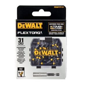 DEWALT BYTC Flex Torq Set #2 Phillips/#8 Conjunto de chave de fenda com haste ranhurada conjunto de chaves de fenda (31 peças) (DWABYTFT-31) - Variedade de brocas de parafusamento de 2,54 cm, suporte magnético e estojo pequeno de armazenamento a granel - Pontas de brocas usinadas com precisão permitem ajuste confortável dentro dos recessos da cabeça do parafuso para fixação controlada - Compatível com a maioria dos drivers de impacto e furadeiras/parafusadeiras - O design patenteado da barra de bits permite fácil remoção de brocas e posicionamento personalizável