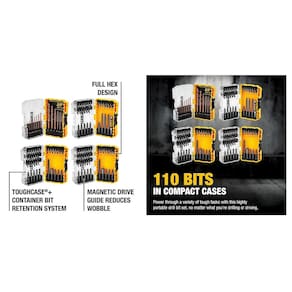 - DEWALT Conjunto de 110 peças para parafusamento e broca mais 4 estojos de armazenamento