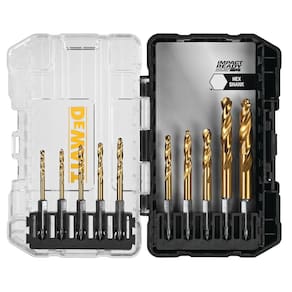 DEWALT Conjunto de brocas revestidas de nitreto de titânio, 10 peças prontas para impacto (DD5160) - DEWALT O conjunto de brocas tem um sistema de armazenamento de acessórios conectável para otimizar o espaço de armazenamento - O design patenteado da barra de brocas permite fácil remoção de brocas e posicionamento personalizável - A tampa transparente do conjunto de brocas revestidas com nitreto de titânio permite que você veja facilmente o conteúdo à primeira vista - Trava de clipe para fechamento seguro - O tamanho pequeno de armazenamento a granel cabe dentro do ToughCase+ pequeno e médio (vendido separadamente) - Ideal para organizar brocas soltas