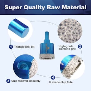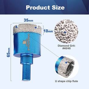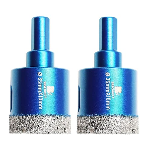 Conjunto de brocas de núcleo de diamante seco, BRSCHNITT 2 peças/pacote de 35 mm (35 mm) broca de núcleo de serra de diamante com haste triangular para azulejo de porcelana, pedra cerâmica, granito, - ?Tamanho --2 peças (observação: 5.1 cm uma caixa), 1 3/20.3 cm (35 mm), altura do diamante 10 mm, comprimento total 65 mm, broca de núcleo de diamante de haste triangular - ? Aplicações amplas – As brocas de núcleo de diamante funcionam muito bem para perfurar furos a seco através de azulejos de porcelana dura, cerâmica, azulejo de banheiro, granito e mármore, alvenaria, concreto, vidro, plástico rígido com facilidade. Usar água pode prolongar a vida útil - ? Matéria-prima de alta qualidade – usando tecnologia soldada a vácuo, que aumenta a resistência à temperatura e atrito, para tornar as partículas de diamante melhor fixadas ao núcleo de aço, importando o desempenho e a vida útil. Construído com grão de diamante de alta qualidade para corte sem esforço e maior durabilidade em aplicações difíceis. O corpo de aço central de alta qualidade ajuda a ser mais eficiente e durável, não deforma facilmente - ? Alto desempenho -- O design especial do sulco espiral na parte superior da broca ajuda na remoção de lascas, cera dentro da broca útil para resfriamento e lubrificação - ? Máquina -- Adequado para qualquer furadeira elétrica, furadeira manual, furadeira de bancada. Ao usar rebarbadora, instale o mandril de broca de rebarbadora