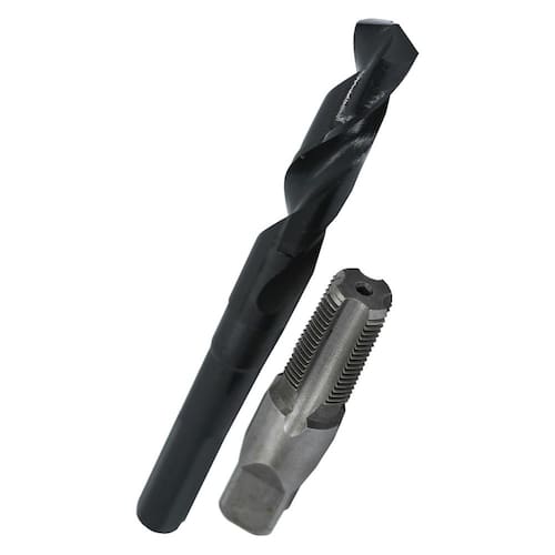 aço carbono de 3/8" e broca HSS de 37/64" com haste de 1/2" - Conjunto vem em bolsa de plástico - o conjunto contém torneira de tubo NPT correspondente e broca de aço de alta velocidade