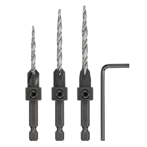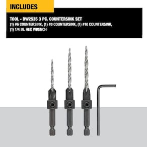 DEWALT Conjunto de brocas escareadoras #6, #8, #10, 3 peças (DW2535) - Broca, escareador e escareador em um passo - Escareador de quatro cortadores e broca cônica fornecem velocidade superior e acabamento ideal - Brocas cônicas de substituição oferecidas