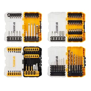 Conjunto de chaves de fenda/conjunto de brocas DEWALT, 100 peças (DWA2FTS100) - Sistema de armazenamento de acessórios conectável para otimizar o espaço de armazenamento do conjunto de brocas - O design patenteado de barra de brocas do conjunto de brocas DEWALT permite fácil remoção de brocas e posicionamento personalizável - A tampa transparente do conjunto de brocas permite que você veja facilmente o conteúdo à primeira vista - A trava de clipe para fechamento seguro - O tamanho pequeno de armazenamento a granel cabe dentro de pequenos e médios ToughCase plus (vendido separadamente) — ideal para organizar peças soltas